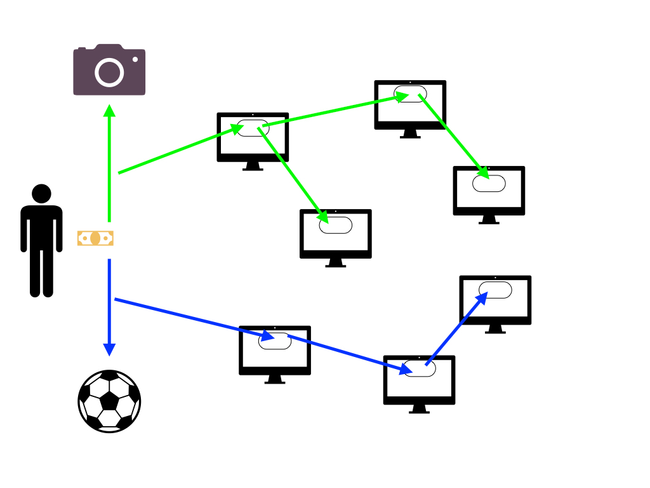 Algunos nodos obtienen primero la transacción de la pelota (e ignoran la transacción de la cámara ).