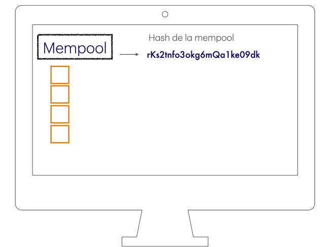 Cada nodo de la red Bitcoin comparte información sobre nuevas transacciones. Cada nodo almacena estas nuevas transacciones en su mempool .