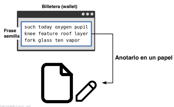 Anotar la semilla en un papel . Escribir la semilla en un papel es la forma más rápida y sencilla de protegerla de ataques digitales. Parece básico, pero funciona.